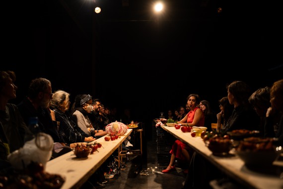 It started with small performances in cafés, theatres and festivals, where Hiba Najem combined her passion for the stage with her research into food. For each recipe that was brought out of oblivion, she reconstructed its history and flavours with her audience. In 2015, chocolate became a symbol of the fusion of bodies; in 2017, she put spices at the heart of a tea ceremony. Her Lentilles au Fenouil (Lentils with Fennel) are now followed by tomato turnovers from her mother’s village, flavoured with the stories of the personalities who shape them. Women, silences and stories of toxic love. Small and real deaths.