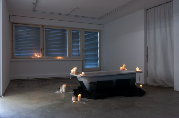 Throughout the evening, Élie Autin's performance Antichambre will appear here and there in La Notte. Antichambre is both a reminder of the past and an introduction to the future. As a sacred space, the installation commemorates the bacchanals of antiquity, but it also stages a whole new ritual of power and seduction. In this space of expectation, gazes hover and shift over a seductive presence that is out of reach. In the resolution of a second and third act, this unapproachable entity draws closer. Whether she is a priestess of Bacchus, an empress or herself, Élie Autin flirts with, attacks and devours the fantasies associated with power and submission.