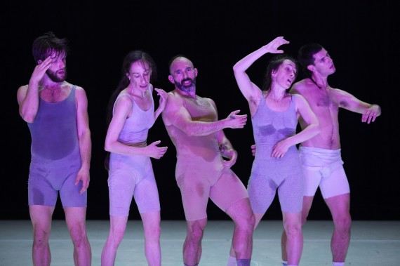 Leurs cinq corps disposés en cercle occupent simplement la scène. Ils sont si sobrement vêtus qu’ils semblent nus. C’est peut-être parce que Les Jolies Choses de Catherine Gaudet est une pièce de retour de confinement que son premier tableau s’offre comme une épure méditative. Et si un bras, un mouvement de torse, une reprise à l’unisson scandent les quatre seules notes harmoniques qui constituent sa trame musicale, c’est que les danseur·euse·s sont les métronomes d’une tendre déconstruction de l’ordre mathématique qui les régit. La complexité de la partition sidère. La maîtrise des danseur·euse·s fascine, tandis que sous le contrôle affleurent des singularités. Provoquer l’affleurement d’états psychiques par la richesse des propositions physiques, c’est la signature de la chorégraphe montréalaise. Son langage est tissé de ces fins changements de tension qui révèlent l’enchevêtrement des émotions, les soubresauts des pulsions jusqu’au jaillissement d’assourdissants chaos intérieurs pimentés de death metal.
