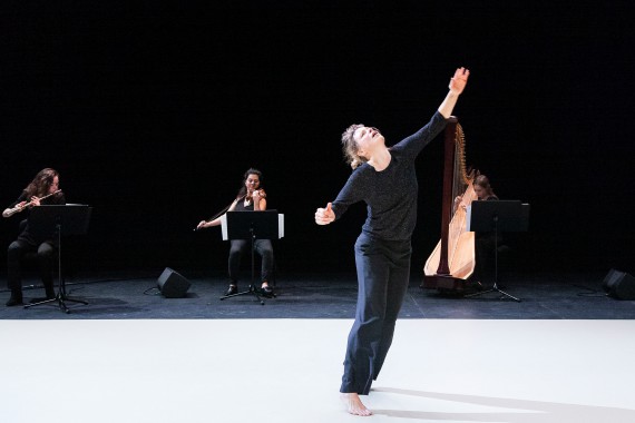 Après avoir traduit Phèdre en Phèdre ! et invité les publics à rejoindre le cercle des amateur·rice·s de tragédies classiques, François Gremaud s’engage dans la réécriture du plus célèbre des ballets romantiques : Giselle. Sa Giselle…, c’est à la danseuse Samantha van Wissen rencontrée chez Thomas Hauert qu’il l’adresse, confiant qu’elle saura créer « cet état de suspension proche de l’apesanteur, dans lequel peuvent [le] plonger les interprètes, ces passeurs d’étonnement, et l’ineffable de l’émotion qui [le] saisit quand je les regarde. » Espoir confirmé. En experte amusée, Samantha van Wissen livre un savant seule-en-scène, donnant voix et vie aux descriptions chorégraphiques ou historiques et aux considérations sociologiques qui entourent le ballet. Nous apprenons ainsi que « le ballet apparaît comme genre dramatique à part entière au XVIIIe siècle » et découvrons « l’importance des variations masculines sur les catégorisations sexe-genre en 1830 », ainsi que « l’influence de la Sylphide sur la couleur des robes de mariée ». De récits en essais, nous suivons les pas de la danseuse vers l’œuvre et le personnage d’une Giselle joyeusement actualisée et d’une rafraîchissante poésie.